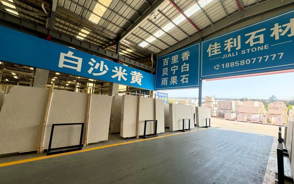 佳利石材主营:百里香,新百里香,白沙米黄,贝宁白,白蘑菇,贝金米黄,超级贝金,香贝米黄,雨果石,哈雷米黄,印象灰,化石灰