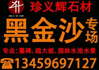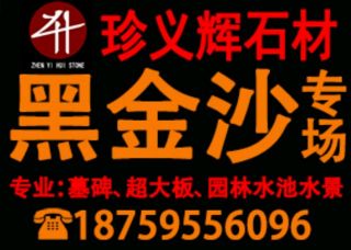 泉州珍义辉石材有限公司主营产品:黑金沙,黑金沙(中花),黑金沙(反切大板面),黑金沙(中细花),黑金沙(仿石砖),国产黑金沙,安哥拉黑,黑水晶,墓碑半成品,盲人石/导盲石,景观石(刻字石),水景企业地址:福建南安水头镇闽南建材市场珍义辉石材